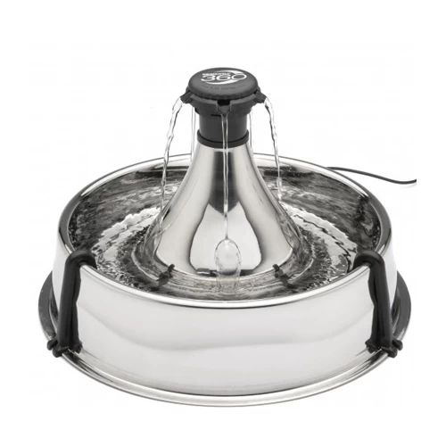 Mit dem PetSafe Drinkwell 360 versorgen Sie Ihren Hund oder Ihre Katze mit fließendem Wasser. Das Wasser wird in dem Trinkbrunnen aus Edelstahl kontinuierlich gefiltert und belüftet, sodass das Wasser länger frisch bleibt.