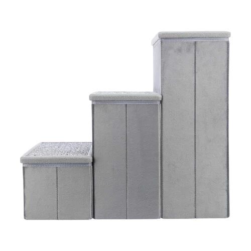 Hat Ihr Haustier Schwierigkeiten, zu seinem Lieblingsplatz zu kommen? Die Trixie Haustiertreppe ist die Lösung! Die Treppe hat Teppichstufen, die einen guten Halt gewährleisten. Außerdem finden Sie in jeder Stufe Stauraum, in dem Sie z. B. Ihr Hunde- und/oder Katzenspielzeug unterbringen können. Gemütlich, nicht wahr? Die Haustiertreppe ist zusammenklappbar und auch leicht zu verstauen. Außerdem hat diese handliche Treppe eine Tragfähigkeit von bis zu 50 Kilogramm.